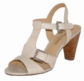 Leather sandal with an elasticated adjustable buckle at the foot & ankle. 3" wood effect cone shaped heel -the height of fashion. Padded insole for extra comfort & rubber sole to keep you on your feet.